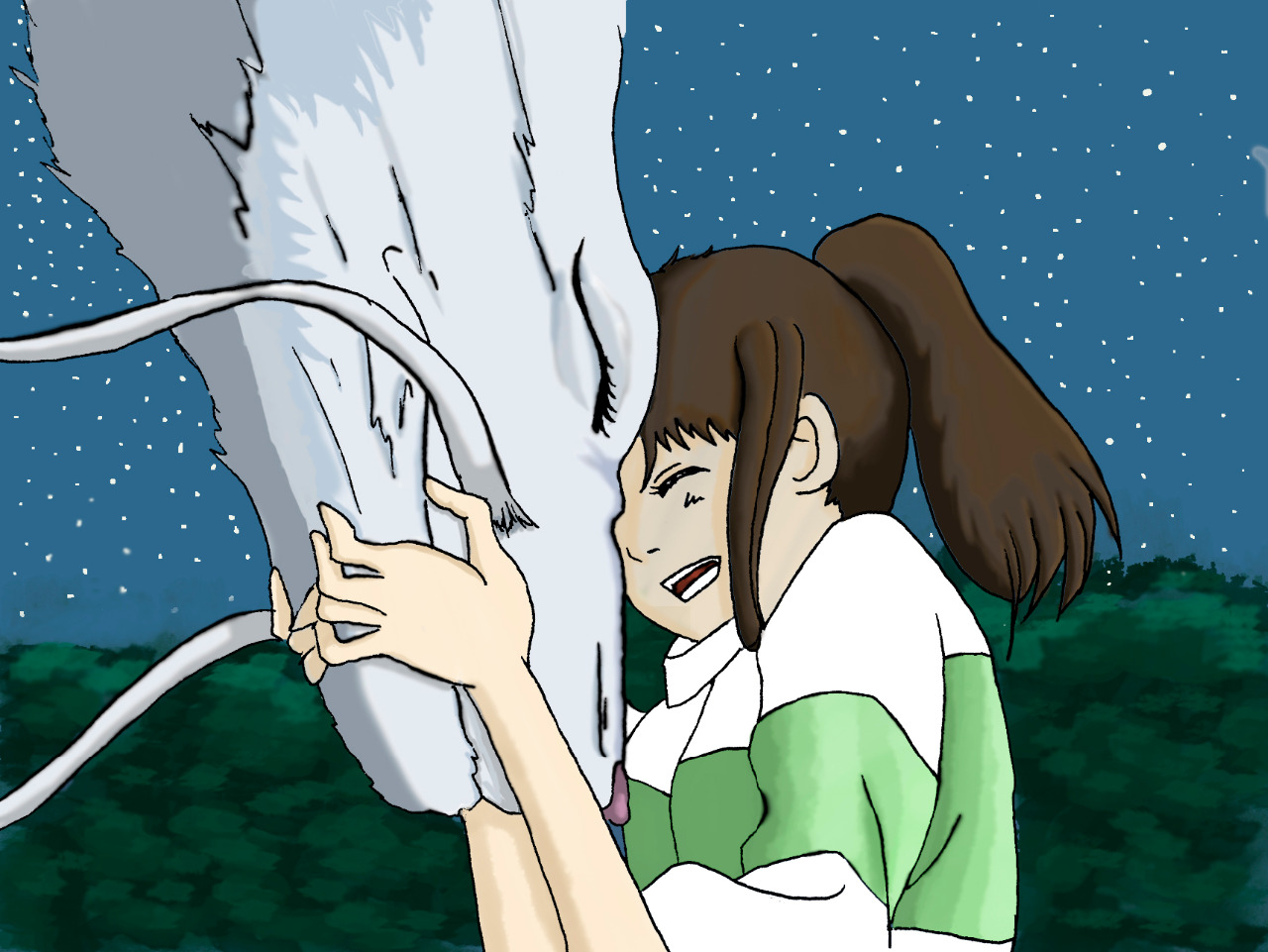 Voici un dessin que j'ai dessiné, encré et colorisé d'après un modèle tiré du voyage de Chihiro.